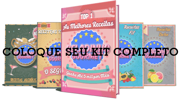 O Kit de E-books contém 115 receitas ao todo, receitas super variadas como: gourmet, detox, alcoólicas, fit e Trufados.
