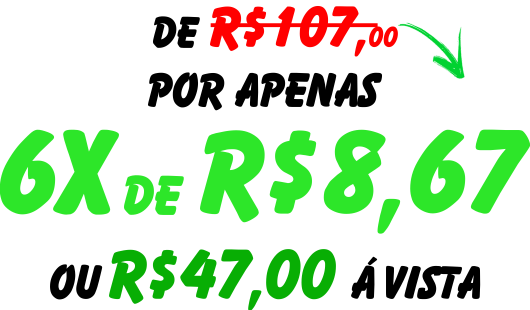 VOCÊ INVESTIRÁ APENAS 6x de R$8,67* ou R$47,00 á vista e poderá ganhar até R$5.000 por mês!