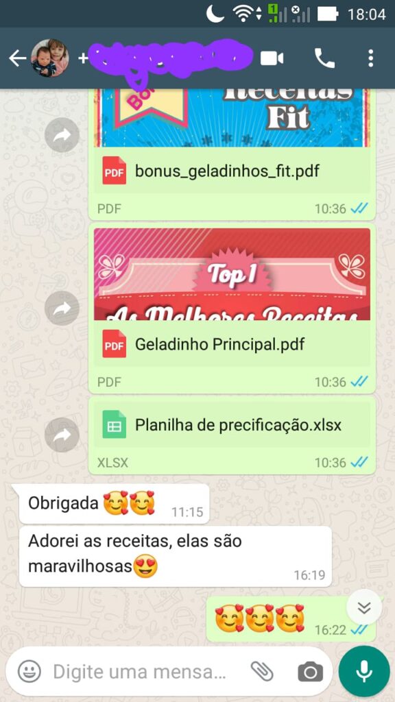 São mais de 140 receitas (incluindo os Bônus) com mais de 180 paginas de puro conteúdo e dicas com as melhores e as mais vendidas receitas, além das logomarcas e planilha de precificação automática com vídeo aulas.