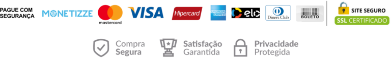 O pagamento é feito através da plataforma Monetizze, onde os seus dados são criptografados de acordo com os padrões de segurança das melhores certificadoras do mundo.