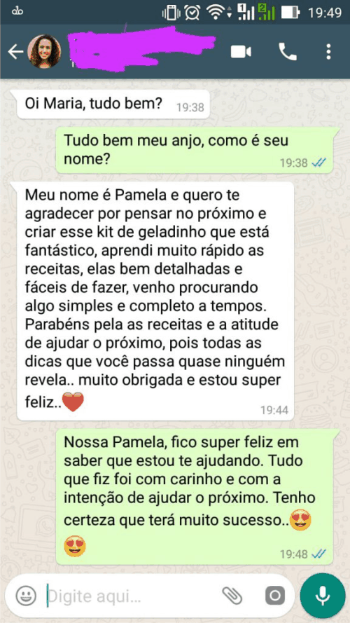 Bom, tudo começou em 2012, onde meu filho Junior estava trabalhando em uma empresa grande e então decidiu iniciar a tão sonhada faculdade de administração, depois de alguns meses a empresa que ele trabalhava acabou o desligando, então meu filho acabou ficando desmotivado por não dar progresso a sua faculdade por falta de dinheiro, então foi ai que tive a ideia de começar a fazer Geladinhos para o ajudar o retorno da faculdade e a compor a renda de nossa família, e logo no primeiro mês já tivemos um retorno muito maior que imaginávamos.